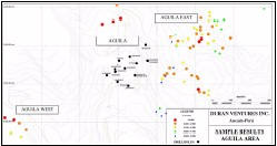 Preliminary results released this week from the IP-MAG geophysics conducted this Fall 2009 across Duran Ventures’ Aguila-Pasacancha property indicate the scope and size of the porphyry system is much larger than originally thought and confirm a very strong system that has very good potential for large resources. Results show the intrusive system is very large, the entire area is related, the system is ripe with sulfide minerals, and possesses large chargeability anomalies all across the property.